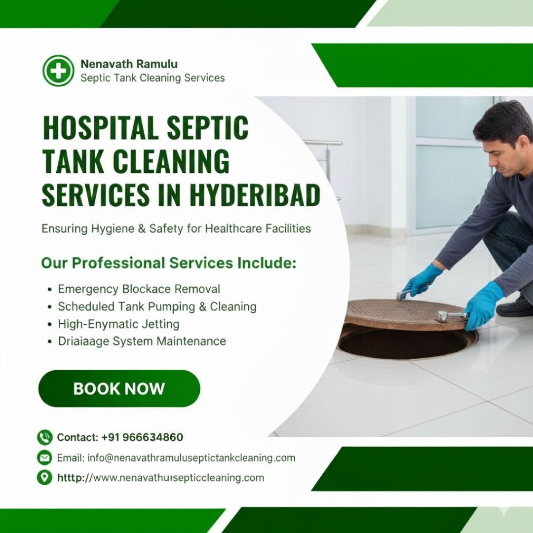 Nenavath Ramulu Septic Tank Cleaning Services offers fast, safe, and professional hospital septic tank cleaning in Hyderabad. Their trained team uses modern machines to ensure hygiene, remove waste, and prevent overflow. They also serve homes and commercial sites. Trusted for quick and clean service. Website: www.nenavathramuluseptictankcleaning.com